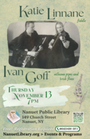 Katie Linnane is a fiddle player and former step dancer, born and raised in New York -- a hotbed for traditional Irish music. Katie's music reflects a deep-rooted connection to the tradition, shaped by her early studies learning from the legendary Willie Kelly and a childhood steeped in Irish music at home. Ivan Goff is from Dublin, Ireland and plays uilleann pipes (Irish bellows-blown pipes) and Irish wooden flute. He is a member of the celebrated Irish traditional band, Danú and performs with the Irish Music Masters with John Doyle and Seamus Egan. Nanuet Library is located at 149 Church Street in Nanuet, NY and is wheelchair-accessible. Please register to reserve your free seat. Reserve Free Seat Here | ||