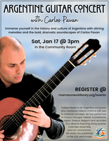 Saturday 3:00 pm | Argentine Guitar Concert Folk/Traditional | Mamaroneck Public Library 136 Prospect Ave Mamaroneck, NY See Map |