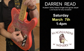 ![]() Saturday 1:00 pm to 4:00 pm | Darren Read Acoustic, Covers | Magnanini Winery 172 Strawbridge Road Walkill, NY See Map |