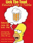 WELL KIDS! LICK THE TOAD WILL MAKE OUR DEBUT AT ELAINES TAP & TABLE SATURDAY JUNE 8TH. MANY OF YOU WILL REMEMBER THIS AS THE SIGHT OF GENTLEMEN JIMS ON ROUTE 44 IN POUGHKEEPSIE NY. THIS PLACE HAS 20 DIFFERENT BEERS ON TAP AND A GREAT RAW BAR! AND THE BAND THAT YOUR PARENTS WARNED YOU ABOUT WILL BE PROVIDING THE ROCK N' ROLL (AND NO F'N DISCO!) THIS NIGHT!!! SO COME ON OUT AND CHECK OUT ALL THE GREAT BEERS AND ALL THE WILD ROCK N' ROLL! SEE YA THERE!STUFF | ||