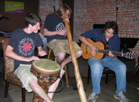 12 Grapes loves nothing more than original artists who use their creativity and talent to express themselves through music. Harmonium is such a band. With each performance, we are more and more mesmerized by their sound.To describe their music as "unique" is an understatement. Harmonium is a World-fusion band that incorporates very different styles of playing into one unique entity. The use of various instruments from around the world allows the band to create sounds that "free your mind and spirit, as well as spring your body into action." Harmonium is a Yorktown-based band, featuring Mark McIntyre on guitar, Joe Schultz on didgeridoo (an Australian wind pipe) and hang (a cylindrical steel drum), and Mike Cesario on percussion. The band just finished their first CD. If you love great listening music... creative, original music... tonight's your night. TICKET PRICE: $5 or free with purchase of $10 in food or beverage. A jam session with "Washboard Rich" | ||