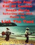 Saturday 8:30 pm to 11:59 pm | END THE SUMMER WITH SOME WILD ROCK N' ROLL! with Lick The Toad Rock (classic), Blues | LA PUERTA AZUL 2510 RT. 44 (1 MILE EAST OF THE PARKWAY) AT THE EDGE OF MILLBROOK, NY See Map |