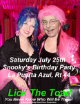NOT ONLY IS IT THE END OF THE MONTH... BUT IT'S SNOOKY'S BIRTHDAY BASH! (TISH & SNOOKY'S MANIC PANIC NOT THE JERSEY SHORE SNOOKI!) SO GET READY FOR SOME WILD-ASS ROCK N' ROLL AS WE CELEBRATE WITH SNOOKY! FOR THOSE OF YOU WHO HAVE ATTENDED ONE OF THESE BEFORE YOU KNOW THERE ARE ALWAYS LOTS OF SURPRISES! THIS WILL BE A WILD TIME IN THE CANTINA! RESERVATIONS ARE STRONGLY SUGGESTED FOR THIS EVENING! COME ON IN AND HAVE A LITTLE SOMETHING TO EAT BEFORE THIS KICKS INTO HIGH-GEAR! SO COME ON OUT AND PARTY WITH THE BAND YOUR PARENTS WARNED YOU ABOUT AS WE CELEBRATE SNOOKY'S BIRTHDAY!.......AND REMEMBER!......YOU NEVER KNOW WHO'S GONNA SHOW UP WHEN LICK THE TOAD COMES TO TOWN! (ESPECIALLY ON SNOOKY'S BIRTHDAY!)!!!!STUFF | ||