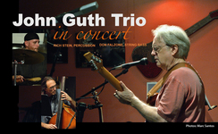 sets from songwriter Guth's repertory. Plus interpretations of some unlikely favorites.Singer-songwriter John Guth is a guitarist and composer who has toured or recorded with artists Bob Gibson, Tom Paxton, Susanne Vega, Judy Collins, Paul Winter, Galt MacDermot, Michael Wolff, Jordan Rudess, The Chapin Sisters, and Peter Allen. Bassist Don Falzone has performed and recorded with Rufus Wainwright, Nick Cave, Lou Reed, Marianne Faithful, k.d. Lang, and Leni Stern. Don's newest CD of jazz standards and originals is entitled “August Quartet." Percussionist Rich Stein is a genre bending musician who holds unique place in the contemporary jazz and world music scenes. He has shared the stage or recorded with Lila Downs, Lauryn Hill, Ustad Sultan Khan, Richard Stoltzman, Eddie Gomez, Jamey Haddad, Haale, and Pharoah’s Daughter, among others. Find more info at John Guth Music on Facebook | ||