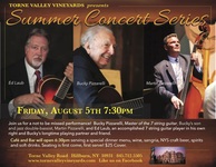 Friday 7:30 pm to 10:30 pm | Pizzarellis & Laub Summer Jazz Concert! with Bucky Pizzarelli, Martin Pizzarelli, Ed Laub Jazz | Torne Valley Vineyards 1 Torne Brook Road Suffern, NY See Map |