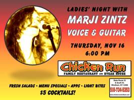 My second time performing in this sweet spot in beautiful Windham, New York! It's Ladies' Night, so there'll be menu specials, "light bites," and $5 cocktails! And, you know, LIVE MUSIC!! That's where I come in! If you've never been there before, come because I *know* you'll have fun! Marji on the Interweb | ||