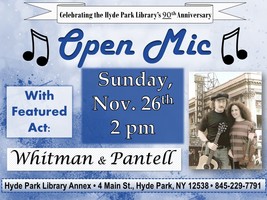 Sunday 2:00 pm | Open Mic at Library With Feature Whitman and Pantell Acoustic, Singer-Songwriter, and Folk/Traditional | Hyde Park Free Library Annex 2 Main St. Hyde Park, NY See Map |