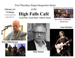 Thursday 6:00 pm to 9:00 pm | First Thursdays Singer Songwriter Series Acoustic, Americana, and Singer-Songwriter | The High Falls Cafe 12 Stone Dock Road High Falls, NY See Map |