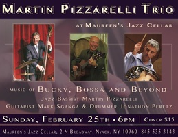 Jazz Bassist Martin Pizzarelli brings Int'l Fingerstyle Guitar Champion Mark Sganga and Drummer extraordinaire Jonathon Peretz for an evening of music from Bucky, Bossa Nova & Beyond! A whole new program from their last performance at Maureen's.Details | ||
