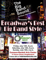 The Cunneen-Hackett Arts Center in Poughkeepsie will be the venue for a swinging "Broadway's Best, Big Band Style" show presented by The Big Band Sound 20-piece jazz orchestra, along with their vocalists, dancers and emcee, and it will benefit the Sparrow's Nest local charity. Performances are Friday, July 13th at 8 p.m., Saturday, July 14th at 8 p.m. and Sunday, July 15th at 2 p.m.At the core of the Great American Songbook are timeless songs that originated on the Broadway stage or later made their way onto Broadway. In this show, songs will be performed from all of the greatest Broadway composers, including classic standards and songs popularized by big bands and big band singers. General Admission is $20: Click the "Buy Tickets" link. Proceeds from this show will benefit the Sparrow's Nest local charity. At last year's show, $3000 was raised for the charity. For more information, visit thebigbandsound.com, email dave@thebigbandsound.com or call 845-226-6072. Buy tickets | ||