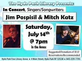 Saturday 7:00 pm | Singer-Songwriters Pospisil and Katz To Appear in Hyde Park with Jim Pospisil, Mitch Katz Singer-Songwriter, Blues, and Acoustic | Hyde Park Free Library Annex 2 Main St. Hyde Park, NY See Map |