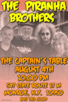 Saturday 10:00 pm to 1:00 am | Bringing there brand of rock and roll to this great venue! with The Piranha Brothers Rock (classic) | The Captain's Table 547 state rt. 17 m Monroe, NY See Map |