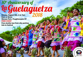 Sunday 1:00 pm to 7:00 pm | Tenth Annual La Guelaguetza Festival with Banda Azul de Oaxaca, Grupo Folclórico de Poughkeepsie, Ballet Folklorico Mexicano de Nueva York, Ballet Folklórico Guadalupano Latin, Folk/Traditional | Waryas Park Main Street Poughkeepsie, NY See Map |