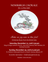 Saturday 7:30 pm to 9:00 pm | Christmas Music from the British Isles with Newburgh Chorale Classical/Opera. Choral music | King of Kings Lutheran Church 543 Union Avenue New Windsor, NY See Map |