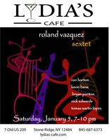 Saturday 7:00 pm to 10:00 pm | Roland Vazquez Sextet Latin, Jazz | Lydia's Cafe & Bar 7 Old US Highway 209 Stone Ridge, NY See Map |