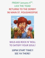 Friday 10:00 pm to 1:00 am | Rock N' Roll Debauchery On Main Street Poughkeepsie with LICK THE TOAD Rock (classic), Blues | THE DERBY 96 MAIN STREET POUGHKEEPSIE, NY See Map |