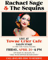 Friday 6:00 pm to 9:00 am | Alt-Folk-Pop Concert in Beacon with Rachael Sage & The Sequins, Vanna Pacella Americana, Singer-Songwriter | Towne Crier 379 Main Street Beacon,, NY See Map |