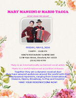 Mary Mancini is an internationally acclaimed vocal artist. Mario Tacca is a world-renowned accordion virtuoso.