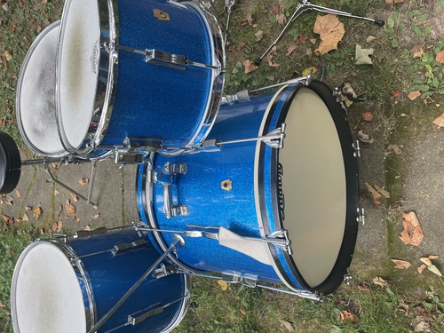 Vintage Ludwig and Rogers drum sets for saleIm selling two vintage drum sets. The first is a 1964 Ludwig Club Date model drum set. 20,12,14, and  the matching 5x14 six lug Pioneer model snare drum all in blue sparkle. No extra holes, or missing parts. Bearing edges are original, no fading on the covering and no splits or lifting at the seams.All drums have white interiors.Bass drum has a small around two inch piece of wood missing on the interior ply.Chrome is nice. Some wear where the pedal attaches to bass drum. Comes with its original Ludwig hardware, cymbal stand,hi hat stand, snare stand, cymbal arm for bass drum, bass drum pedal and drum throne, all Ludwig hardware and original to the kit when it was sold in 1964. Also including cases.for all the drums.$1,600.