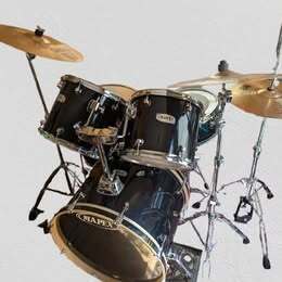 Mapex Drums SetMapex Jet Black 5 Piece Drum Set with 22" x 18" bass drum, 14" x 5.5" snare drum, 16" x 16" floor tom, 12" x 10" tom, 13" x 12" tom, stool, bass drum pedal, hi hat stand, snare drum stand, new 18" Sabian cym. & stand, 16" Zildjian Cym.& standand new 14" Sabian hi hats & drum key. OBO !