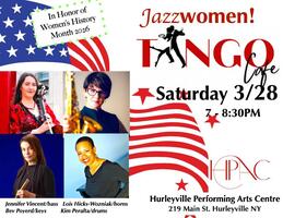 Saturday 2026 7:00 pm to 8:30 pm | Live Jazz!! with Jazzwomen! Jazz | Tango Cafe/HPAC Hurleyville Performing Arts Center 9 Main Street Hurleyville, NY See Map |
