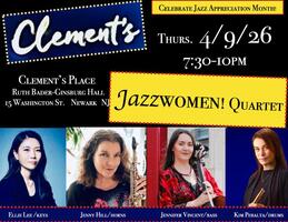 Thursday 2026 7:30 pm to 10:00 pm | Live Jazz in Newark! with Jazzwomen!, Jenny Hill/sax, Ellie Lee/keys, Jennifer Vincent/double bass, Kim Peralta/drums Jazz | Clement's Place Ruth Bader Ginsburg Hall 15 Washington St. Newark, NJ See Map |