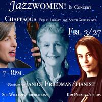 ![]() Friday 7:00 pm to 8:00 pm | Live Jazz in Chappaqua! with Jazzwomen!, Janice Friedman/piano, Sue Williams/double bass, Kim Peralta/drums Jazz | Chappaqua Library 195 South Greeley Avenue Chappaqua, NY See Map |