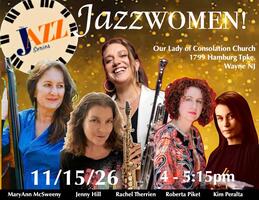 ![]() Sunday 4:00 pm to 5:15 pm | Jazz in Jersey! with Jazzwomen!, Rachel Thierren/trumpet, Jenny Hill/tenor sax/flute, Roberta Piket/piano, Mary Ann McSweeney/double bass, Kim Peralta/drums Jazz | Jazz on Sunday Afternoon Our Lady of Consolation Cnurch 1799 Hamburg Tpke. Wayne, NJ See Map |
