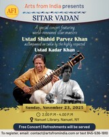 A special concert featuring world-renowned sitar maestro, Ustad Shahid Parvez Khan, accompanied on tabla by the highly respected Ustad Kadar Khan. Refereshments will be served.