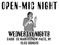 Wednesday 10:30 pm to 3:00 am | Open Mic (every wednesday) | Oasis 58 Main St New Paltz, NY See Map |
