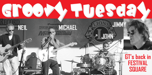 Festival Square Summer Concert Series presents Groovy Tuesday performing a special 2-hour concert.GT is one of the Hudson Valley's best vocal groups playing the great memories you grew up with! From Crosby Stills & Nash to Pink Floyd...and many more. There is plenty of seating, but to be safe bring your own. All ages welcome! Contact GT at: groovytuesday@live.com | ||