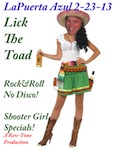 WELL! IT'S THAT TIME OF THE MONTH AGAIN!! NO, NO!! NOT THAT TIME! THE TIME OF THE MONTH WHEN TOAD LICKERS FROM ALL OVER THE AREA CONVERGE ON LA PUERTA AZUL! TO HAVE A LITTLE SOMETHING TO EAT, DRINK, DANCE AND HANGOUT AND HAVE A LITTLE FUN! SO IF YOU'RE UP FOR SOME REAL ROCK N' ROLL BY THE LIKES OF THE STONES, DAVID BOWIE, THE RAMONES, JOAN JETT, THE BEATLES, THE KINKS, AND A WHOLE LOT MORE!! THAN IT'S TIME TO COME ON OUT AND PARTY WITH THE ROCK BAND YOUR PARENTS WARNED YOU ABOUT!!! .............. LICK THE TOAD!
