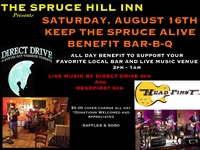Saturday 3:00 pm | KEEP THE SPRUCE ALIVE BENEFIT and BBQ, DIRECT DRIVE, HEADFIRST Rock (classic). Southern Rock | SPRUCE HILL INN 1 Lake Oscawana Road Putnam Valley, NY See Map |