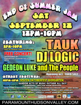 Saturday 12:00 pm | Paramount's Free End of Summer Music Fest -This Saturday!, DJ Logic, TAUK, Gedeon Luke Acoustic, Rock (classic), and Folk/Traditional. Jam bands | Paramount Hudson Valley 1008 Brown St. Peekskill, NY See Map |