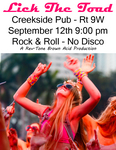 Saturday 9:00 pm | TOAD LICKING RETURNS TO NEWBURGH! with Lick The Toad Rock (classic), Blues | CREEKSIDE PUB 5528 RT. 9W NEWBURGH, NY See Map |