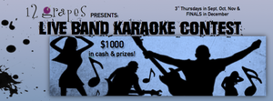Our LBK CONTEST is down to 12 Contestants! Come watch the FINALS tonight! The stakes: Over $1000 in cash and prizes awarded to the top three singers.> Participants will be judged on: 1) Vocal Talent, 2) Stage Presence, 3) Audience Reaction 12 Grapes Live Band Karaoke is the first of its kind in Westchester, and winner of BEST KARAOKE from Westchester Magazine. *For info, email 12grapes.info@gmail.com "Karaoke is fun enough to begin with, but karaoke with a live band and backing singers? A can't miss." --Journal News SPONSORS: D. Bertoline & Sons (Peekskill), More Sugar Magazine, Watchpital (Fishkill) | ||