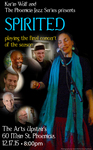Karin Wolfe, and The Phoenicia Jazz Series Presents "Spirited" ~ This will be the final concert of the 2015 Jazz Series. This event is a celebration of music as much as the conclusion of a successful year of live music produced by Karin Wolfe, and The Arts Upstairs. Spirited will debut material from their upcoming CD. Featuring J Alison Henry (vocals, percussion), Rich Syracuse (bass), Dennis Yerry (keys), Gus Mancini (sax), Tom DePetris (guitar), and Ruperto Ifil (drums). Join us in celebration! | ||