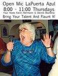 WELL KIDS! THE OPEN MIC AT LA PUERTA AZUL! IS FOR YOU THE PEOPLE! IT IS NOT ABOUT THE HOSTS! IT'S ABOUT THE PARTICIPANTS AND THE AUDIENCE!! WE SUPPLY THE BACKLINE, THE PA, THE DRUMS ALL THAT'S MISSING IS YOU! ALL TYPES OF MUSIC WELCOME! ALL TYPES OF INSTRUMENTS WELCOME! SPOKEN WORD WELCOME! ACOUSTIC, ELECTRIC .....IT'S UP TO YOU! WE HAVE VERY FEW RULES.......JUST A COUPLE NO PEDALBOARDS! (TIME DOESN'T ALLOW FOR ALL THAT PLUGGING IN! ) AND NO PLAYING OR SINGING TO TRACKS! LIVE MUSIC OH YEAH AND WE RESERVE THE RIGHT TO CONTROL VOLUME!!........SPOKEN WORD IS WELCOME! AND THIS STARTS EARLY AND ENDS EARLY BECAUSE IT'S A SCHOOL NIGHT! WE USUALLY START OUT WITH ACOUSTIC ACTS FIRST AND WORK UP TO THE ELECTRIC ACTS LATER IN THE EVENING (SO AS NOT TO DISTURB THE DINNER CROWD). SEE YA THERE! | ||