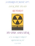 FOR THOSE OF YOU WHO HAVE NEVER BEEN TO THE SHELTER : UNDERGROUND BAR........YOU REALLY DON'T KNOW WHAT YOU ARE MISSING!! AND LICK THE TOAD IS EXCITED TO BE RETURNING!! THE NEW MANAGEMENT HAS IMPROVED ON WHAT MANY PEOPLE THOUGHT WAS PERFECTION! SO COME ON OUT AND CHECK THIS PLACE OUT AND WE PROMISE WE WILL KICK IT UP A COUPLE OF NOTCHES FOR ALL OF OUR FRIENDS IN RHINEBECK!!!! SEE YA THERE!!!STUFF | ||