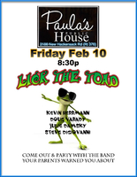 WELL LICK THE TOAD IS RETURNING TO PAULA'S PUBLIC HOUSE!! AND WE CAN'T WAIT WE LOVE IT THERE AND WE LOVE EVERYONE WHO SHOWS UP THERE AND EVERYONE WHO WORKS THERE AND WE LOVE THE OWNERS!! DID WE MENTION WE LOVE EVERYBODY!!?? SO COME ON OUT AND PARTY WITH THE BAND YOUR PARENTS WARNED YOU ABOUT!!! LICK THE TOAD AS WE TAKE YOU ON A TRIP THROUGH SOME WILD-ASS CLASSIC ROCK N' ROLL!STUFF | ||