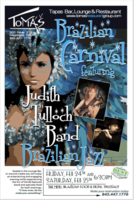 Saturday 7:30 pm | Brazilian Carnival!!! with The Judith Tulloch Band Singer-Songwriter, Jazz, and World | Tomáś Tapas Bar & Restaurant 900 Route 376 Wappingers Falls, NY See Map |