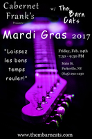 Friday 7:30 pm to 10:30 pm | Mardi Gras Party with The Barn Cats Funk, Blues, and Soul | Cabernet Franks 38 Main Street Parksville, NY See Map |