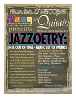 Monday 8:00 pm to 11:00 pm | Jazzoetry: In and Out of Time - Music Set to Words with Kitt Potter, Dutchess County Poet Laureate Poet Gold, Eric Person , Neil Nail Alexander , Robert Kopec, Dean Sharp, Mike Jurkovic, G. W. Werner, Esther Taylor Evans, Evelyn Clarke, Steve Jones Jazz, Funk | Quinn's Restaurant 330 Main Street Beacon, NY See Map |