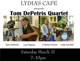 Saturday 7:00 pm to 10:00 pm | Tom DePetris Quartet Jazz, Blues, and Funk | Lydia's Cafe & Bar 7 Old US Highway 209 Stone Ridge, NY See Map |
