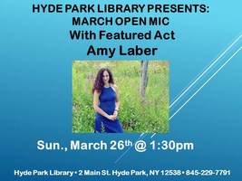 Sunday 1:30 pm to 4:00 pm | Open Mic at Library With Feature Artist Laber with Amy Laber, Never2Late, Gregory Callahan and many more Singer-Songwriter, Folk/Traditional, and Americana | Hyde Park Free Library Annex 2 Main St. Hyde Park, NY See Map |