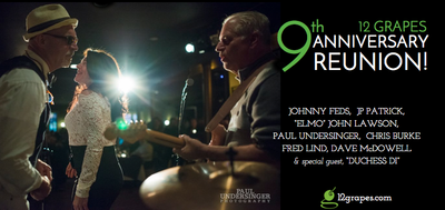 ![]() Sunday 6:00 pm to 9:00 pm | A 9th Anniversary Special Event: A 12 Grapes REUNION! with Johnny Feds & Friends, and special guest Duchess Di Blues | 12 Grapes Music & Wine Bar 12 North Division Street Peekskill, NY See Map |