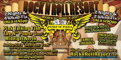 | Rock n Roll Resort is returning to Hudson Valley Resort in Kerhonkson, Friday to Sunday, March 31 to April 2 with “Feast of Fools” concert featuring more than 30 artists including The Nth Power, Pink Talking Fish, Midnight North with Grahame Lesh, The Primate Fiasco and others.
