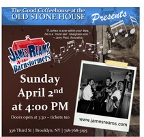 Sunday 4:00 pm to 6:00 pm | Good Coffeehouse Offers Great Bluegrass Music! with James Reams & The Barnstormers Bluegrass, Americana, and Folk/Traditional | Old Stone House - Good Coffeehouse 336 Third Street Brooklyn, NY See Map |