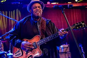 Slam Allen was nominated for a 2016 Blues Music Award for the "Best New Artist Album" for "Feel These Blues". He performs at top venues and festivals both nationally and internationally. 12 Grapes is honored to present this up-close-and personal concert with Slam Allen. A NY Blues Hall of Fame Master Musician, Slam has been entertaining audiences for decades. "The Soul Working Man" is lead singer and guitarist in the legendary James Cotton Band. "[Cotton] is one of the last living legends... directly connected to Muddy Waters..." They say it's often difficult to tell if he's doing one of his originals or an old Blues or Soul cover. Regardless, he makes all the music his own. Slam Allen was headliner for the 9th Annual Peekskill Jazz & Blues Festival, and took our town by storm! Slam's endearing personality will have you grooving to the music, and loving every minute of it. **$12 Entertainment Fee or $6 with dinner entree** Listen on youtube! | ||
