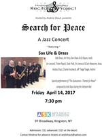 HVRP: Search For Peace - A Jazz Concert Friday, April 14th 7:30 pm $12 advanced $15 at the door Performers Bob Shaut, Jim Perry, Dan Shaut & Ed Xiques - reeds Jon Leonard, Tristen Napoli, Dave Pratt, Eric Iannucci & Sam Newsome - brass Andrea Shaut, Charlie Kniceley & Jeff "Siege" Siegel - rhythm Special performance of "The Quiescence - Themes for Peace", written by Bob Shaut during the Vietnam War Facebook event: www.facebook.com/events/235337250207317 Buy Tickets Here! : https://www.eventbrite.com/e/hudson-valley-recital-project-search-for-peace-a-jazz-concert-tickets-32980592841 Buy Tickets Here! | ||